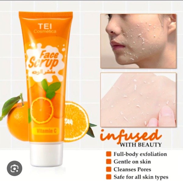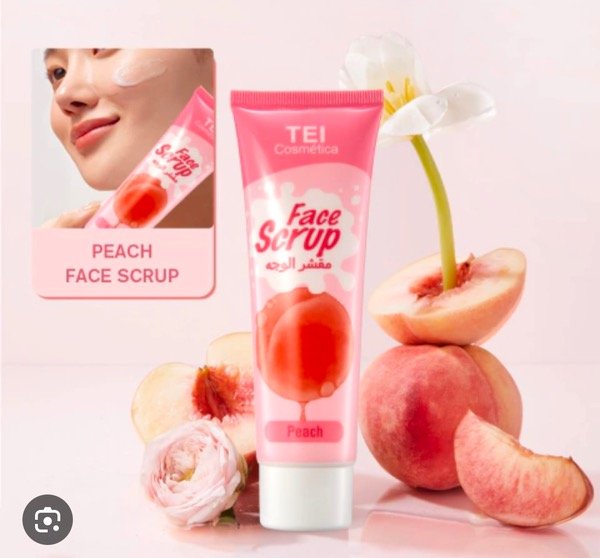 El producto de la imagen es un exfoliante facial y corporal de durazno de la marca Tei Cosmética. Es ideal para eliminar impurezas y células muertas, dejando la piel suave y radiante.